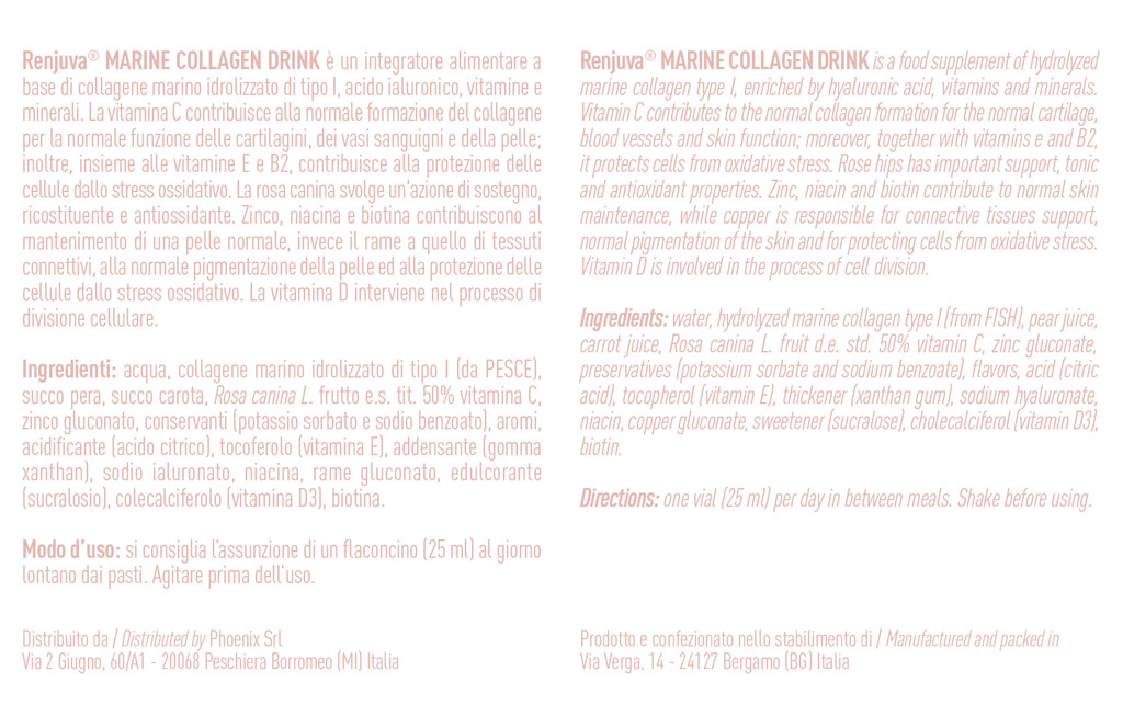 Renjuva® Marine Collagen Drink LongLife is an innovative formula based on type I hydrolyzed marine collagen, hyaluronic acid, vitamins and minerals.